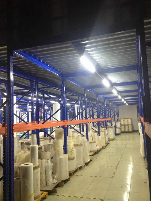 閣樓式貨架中,根據結構不同,我們將一樓為貨架、二樓為平台的,稱作為閣樓平台。閣樓平台主要是在一(yī)樓擺放一些小物品或規則型貨物,而二樓為開闊的(de)空間,可以(yǐ)隨意擺放和(hé)布局。我們這次為印刷公司設計(jì)的,一樓為重型貨架,通過托盤來存取貨物,二樓平台則擺放大件貨物。