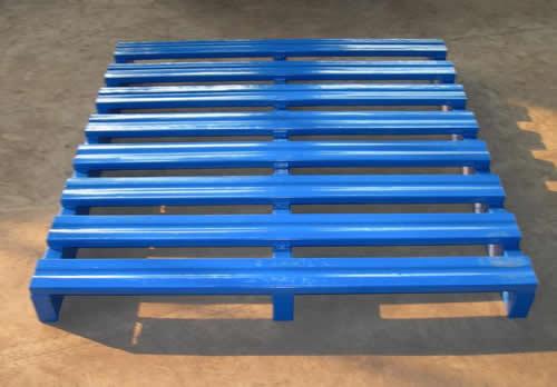 鋼製托盤(鋼托(tuō)盤)適合叉車作業,存取(qǔ)貨物(wù)方便。主要用於多用途的地麵存儲、貨架存儲及貨物聯運、周(zhōu)轉等超輕金屬托盤係列。集裝、堆放、搬運和運輸的放置作為單元負荷的水平平(píng)台裝置。是工業重要的倉(cāng)儲與運輸輔助設備之一。主要材料為鋼材(cái)或鍍鋅(xīn)鋼板,經專用設備成型,各種型材互相支撐,鉚釘連接加(jiā)強(qiáng),再經CO2氣體保(bǎo)護焊焊接而成。